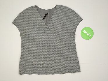 Bluzka damska z długim rękawem, 100% wiskoza - Wzór: czarno‑biały, geometryczne kropki/rombiki tworzące „pikselową” kratkę - Krój: lekko luźny, taliowany marszczeniem w pasie - Dekolt: w serek (V-...