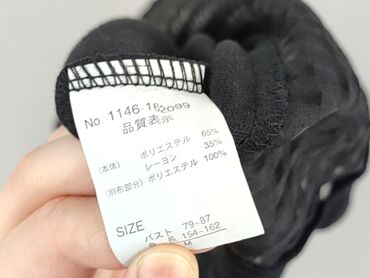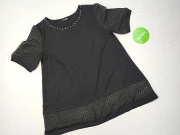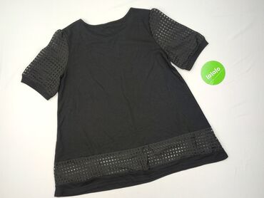 Czarna damska bluzka House, rozmiar M. - Fason: luźny T‑shirt z okrągłym dekoltem - Rękawy: krótkie, ażurowe/koronkowe wstawkami na ramionach i na całej długości rękawów - Materiał: 65% poliester,...