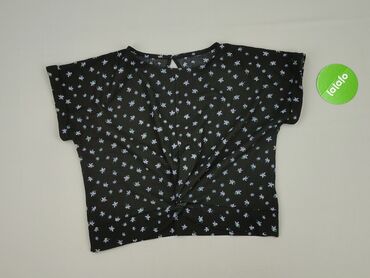 Bluzka damska z krótkim rękawem - Kolor: czarny z białym, roślinnym/mandalowym nadrukiem - Fason: dopasowany, elastyczny, dekolt w kształcie litery V z marszczeniem pośrodku; rękawy typu kimono/lek...Stan: