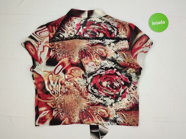 Bluzka damska z krótkim rękawem, w kwiatowy wzór. - Kolor: czarne tło z dużymi kwiatami w odcieniach ecru i czerwieni - Krój: luźny, komfortowy; dekolt w kształcie litery V z niewielkim rozcięciem...