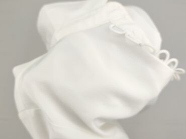 Bluzka damska Reserved - Model: gładka, krótki rękaw - Kolor: biały/łamana biel - Dekolt: okrągły, z delikatnymi zaszewkami z przodu - Zapięcie: małe rozcięcie i guziczek z tyłu pod szyją - Dół: l...