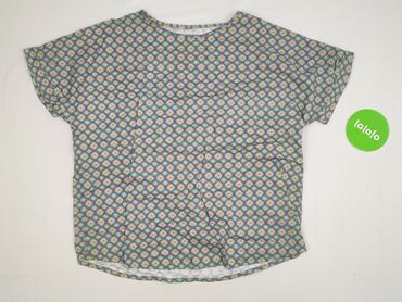 Bluzka damska z kolorowym, geometrycznym wzorem (trójkąty w odcieniach żółci, różu, turkusu, granatu i bieli). - Rozmiar: 42 (widoczny na metce wewnętrznej) - Krój: luźny, z krótkim rękawem typu ...