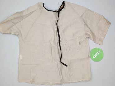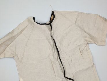 Bluzka damska z krótkim rękawem, oversize/kimono - Krój: luźny, bezszwowe rękawy typu kimono, dekolt łódkowy - Wzór: etniczny/geometryczny, kontrast czerni na jasnobeżowym tle - Materiał: miękki, ...