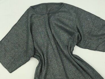 Szara bluzka/długi top z połyskującymi wstawkami z cekinów. - Kolor: jasny szary melanż - Krój: luźny, z obniżoną linią ramion - Rękawy: 3/4 - Dekolt: okrągły - Ozdoby: duże panele z białych/srebr...
