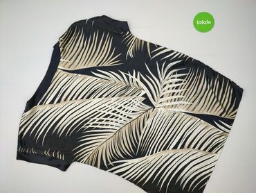 Bluzka damska z tropikalnym wzorem - Kolor bazowy: czarny - Motyw: liście i kwiaty w odcieniach żółci, różu i niebieskiego - Krój: luźny, lekko marszczony materiał; krótkie rękawki; okrągły dekolt...