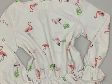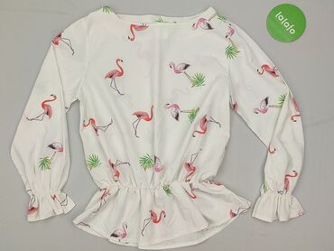 Biała damska bluzka z długim rękawem, wykonana w 100% z wiskozy. Bluzka charakteryzuje się wzorem w flamingi i liście, z falbanką na dole. Zapinana z tyłu na pojedynczy guzik, co ułatwia zakładanie...