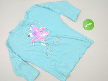 Bluzka damska z długim rękawem - Kolor: chabrowy/niebieski - Dekolt: okrągły - Przód: duży nadruk trzech margerytek w odcieniach beżu i pomarańczu - Napis na przodzie: „Life is beautiful” zdobiony...