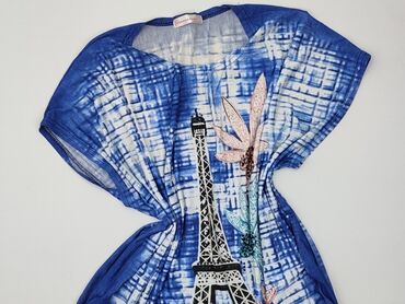 Bluzka damska Blue, rozmiar 44 - Fason: luźny, oversize z opadającym rękawem typu kimono - Dekolt: półokrągły, wykończony cienką lamówką - Wzór: drobny melanż/abstrakcyjna mozaika w odcieniach bie...
