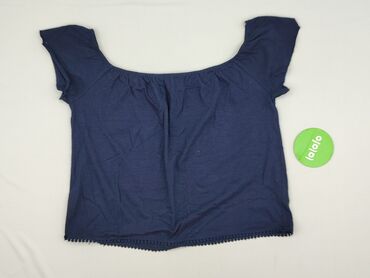 Bluzka damska Medicine, rozmiar M - Fason: hiszpanka – dekolt odkrywający ramiona z elastyczną gumką - Rękawy krótkie, lekko falbaniaste - Kolor: granatowy - Materiał: lekka, miękka tkanina o deli...