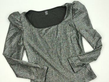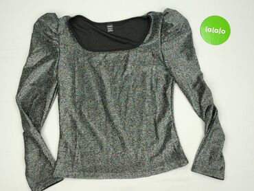 Bluzka damska SHEIN, rozmiar M (EU 38, US 6). - Kolor: czarny - Fason: długi rękaw, lekko wydłużony dół - Dekolt: głęboki, z wszytą wstawką z połyskującej, brokatowej dzianiny (czarne tło z drobnym...