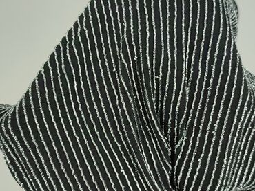 Bluzka damska w paski - Kolor: czarno-białe, wąskie pionowe paski - Krój: luźny, z krótkim rękawem - Dekolt: w kształcie litery V - Rękawy zakończone czarnymi mankietami - Dół lekko zaokrąglony, t...