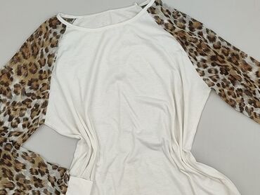 Bluzka damska z długim rękawem w panterkę - Wzór: panterka (beż/czarny/brąz) - Fason: luźniejsza góra z nietoperzowymi rękawami, zwężana na dole - Dekolt: łódka z brązową lamówką - Mankiety i dół:...