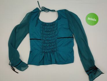 Bluzka damska Misha, rozmiar S - Kolor: głęboki butelkowy/teal - Fason oversize z odcięciem pod biustem i obfitymi marszczeniami - Rękawy długie, rozkloszowane z kaskadowymi falbanami - Dekolt okr...