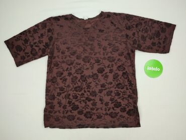 Bluzka damska z wzorem kwiatowym - Rozmiar: XL (etykieta widoczna na zdjęciu) - Materiał: lekka, półprzezroczysta tkanina syntetyczna (miękko układa się na sylwetce) - Kolorystyka: brązowo‑złote i...