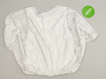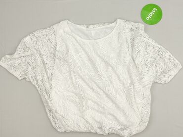 Bluzka damska WOMEN, rozmiar S - Kolor: biały z subtelnym, roślinnym wzorem w odcieniach bieli/szarości (efekt ażurowy – półprzezroczysta tkanina wierzchnia). - Krój: luźny, nietoperzowe rękawy do...