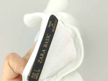 Bluzka ZARA BASIC – biała, zwiewna, półtransparentna - Model: ZARA BASIC (etykieta widoczna na zdjęciu) - Rozmiar: L (EUR/USA L, MEX 30) - Fason: prosta, lekko luźna - Zapięcie: listwa z guzikami ...