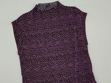Bluzka damska Zara Basic w rozmiarze S. Charakteryzuje się wzorzystym nadrukiem w odcieniach różu, czerni i bieli, który nadaje jej dynamiczny wygląd. Bluzka ma okrągły dekolt z rozcięciem z tyłu z...
