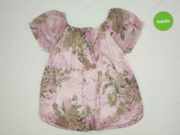 Bluzka damska w kwiaty - Kolor tła: jasnoróżowy/bladobeżowy - Wzór: kwiatowy w odcieniach różu, czerwieni i zieleni - Krój: lekko taliowana, swobodna - Rękawy: krótkie, delikatnie bufiaste z subte...