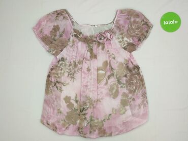 Dziewczęca bluzka w kwiaty - Kolor: pastelowy róż z wielobarwnym, wyrazistym nadrukiem kwiatowym - Materiał: lekka, ażurowa koronka z delikatną podszewką; miękka i elastyczna - Krój: luźny, prosty...Stan: