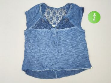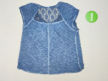 Bluzka dziewczęca, błękitna - Krój: T‑shirt z krótkim rękawem raglanowym - Przód: panel z haftowanej tkaniny (angielskie hafty, ażurowe oczka) w kolorze jasnego błękitu - Tył i rękawy: miękka dzia...