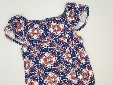 Bluzka dziewczęca hiszpanka - Kolor: jasny jeans/niebieski z granatowym, kwiatowym nadrukiem - Krój: odkryte ramiona (hiszpanka) z elastyczną gumką przy dekolcie i ramionach - Dekolt zdobiony biał...