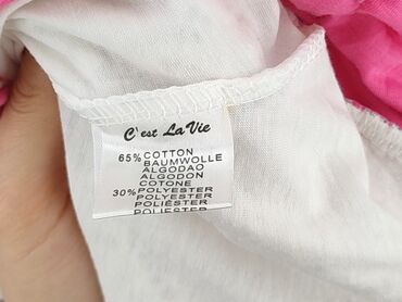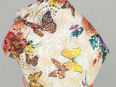 Damska koszulka z nadrukiem motyli i kwiatów - Krój: luźny T‑shirt z krótkim rękawem - Dekolt: szeroki, zaokrąglony (łódka) - Kolor bazowy: biały - Nadruk: wielobarwne motyle, kwiaty i pióra z prz...Bluzka dziewczęca z krótkim rękawem, wyróżniająca się wzorem w motyle i kwiaty. Dekolt łódka z różową lamówką. U dołu szeroki ściągacz w kontrastowym różowym kolorze, co zapewnia lepsze dopasowanie. W komplecie biały top na ramiączkach, który można nosić pod bluzką. Idealna na co dzień, na lato i na wiosnę. Bluzka jest nowa i w dobrym stanie.