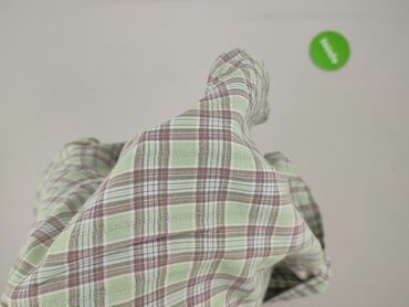 - Wzór: drobna krata w odcieniach zieleni, bieli i śliwkowego