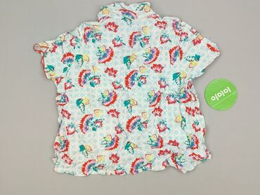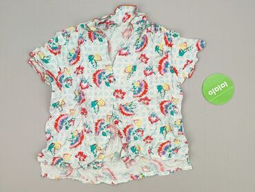 Damska koszula/bluzka z krótkim rękawem - Wzór: czarno‑biały, roślinny/abstrakcyjny all-over - Fason: zapinana na guziki z przodu, lekko taliowana; na dole po bokach wiązania do regulacji szerokoś...Stan: