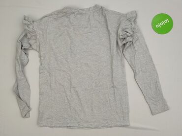 Szary dziewczęcy sweterek/bluzka z długim rękawem. - Kolor: melanż szaro-biały - Fason: dopasowany, lekko zaokrąglony dół, okrągły dekolt - Przód ozdobiony dużą aplikacją „smiley” z drobnych, błys...Stan: