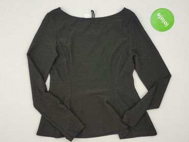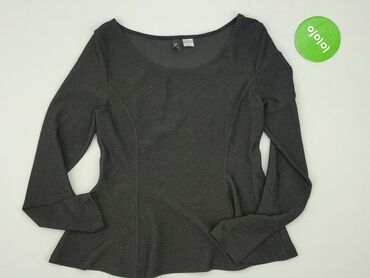 Bluzka H&M Divided - Model: damska bluzka z długim rękawem - Kolor: czarny z kwiatowym nadrukiem (róże/peonie w odcieniach różu i czerwieni, zielone liście; motyw ptaków) - Kołnierz: ozdobny, wiąz...