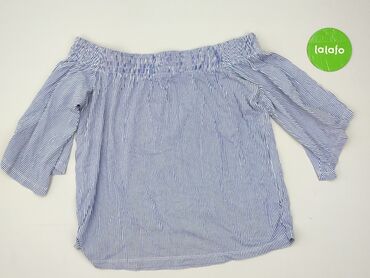 Bluzka hiszpanka W CASUAL, rozmiar L. - Krój: odkryte ramiona z elastycznym dekoltem (off-shoulder) - Rękawy: 3/4 z marszczeniem/gumką przy mankietach - Wzór: drobne, pionowe paseczki w odcien...