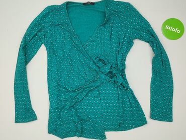 Bluzka damska IT MODA, rozmiar S - Kolor: beżowy z czarnym, abstrakcyjnym nadrukiem - Fason: luźniejszy krój, dekolt w kształcie litery V z wiązaniem pod szyją - Rękawy: długie, zakończone gumką p...