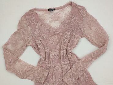 Bluzka damska AMISU, rozmiar L - Kolor: pudrowy róż - Fason: dopasowany, z okrągłym dekoltem i długim rękawem - Materiał: elastyczna dzianina z przodu w całości pokryta koronką o kwiatowym wzorze;...Stan: