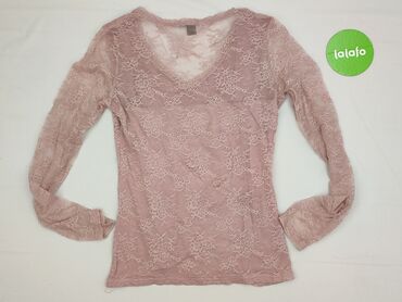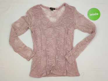 Bluzka damska AMISU, rozmiar S. - Kolor: pudrowy róż - Fason: dopasowany, z okrągłym dekoltem - Rękaw: 3/4 - Przód i rękawy pokryte koronką w kwiatowy wzór; tył gładki, dzianinowy - Materiał elasty...