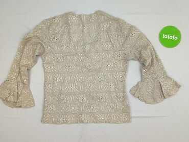 Koronkowa bluzka damska, kremowa/ecru - Rozmiar: S (metka widoczna na zdjęciu) - Krój: lekko dłuższy, półprzezroczysty - Materiał: delikatna koronka z kwiatowym wzorem - Rękawy: długie, zakończone...