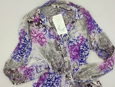 Fioletowa koszula damska Charles Vögele - Krój: koszula zapinana na guziki, krótki rękaw, kołnierzyk - Kolor: intensywny fiolet - Materiał: 67% bawełna, 28% poliamid, 5% elastan – tkanina lekko el...