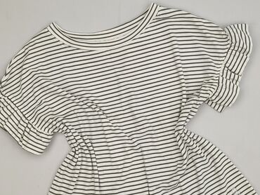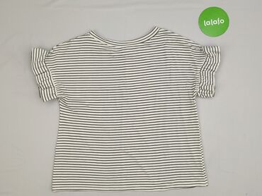 Bluzka damska w paski – rozmiar M - Krój: prosty, z okrągłym dekoltem - Rękawy: krótkie, z ozdobnymi wiązaniami po obu stronach - Wzór: biało‑czarne poziome paski (styl marynistyczny) - Materiał: ...