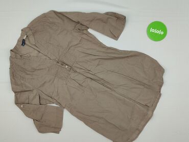 Długi rękawBeżowa bluzka tunika damska marki Esmara, idealna do codziennych stylizacji. Charakteryzuje się rękawami z możliwością podwinięcia, co dodaje jej uniwersalności. Dekolt w kształcie litery V, zapinany na guziki, oraz marszczenia z przodu podkreślają fason. Wykonana z lekkiego materiału, zapewniającego komfort noszenia. Dostępna w rozmiarze S (EU 36/38).