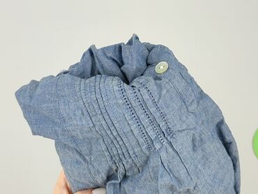 - Materiał: 100% bawełna – lekka, przewiewna tkanina przypominająca denim/chambray w kolorze jasnego jeansu