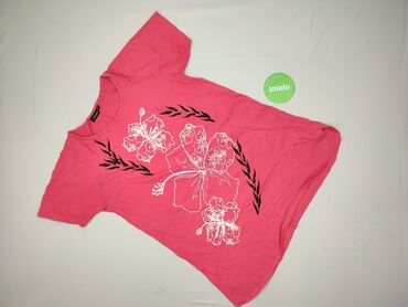 Bluzka damska Page One, rozmiar L/XL - Kolor: pudrowy róż - Fason: luźny, z doszytą falbaną u dołu, krótki rękaw, okrągły dekolt - Przód: duża aplikacja litery „M” z ozdobnymi perełkami na tle kwi...