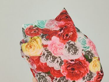 - Wzór: gęsty nadruk w róże/peonie w wielu kolorach (czerwienie, róże, żółcie, turkusy, szarości) na jasnym tle.