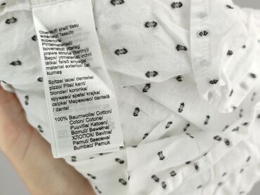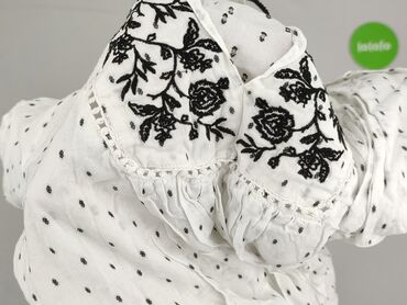 Bluzka tunikowa w drobny, kropkowany wzór - Krój: luźna tunika, długość do bioder - Rękaw: 3/4, lekko bufiany - Dekolt: szeroki, kwadratowy z krótką stójką i rozcięciem z przodu - Ozdoby: koronka/...