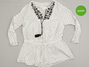 Bluzka/tunika damska Yessica (C&A) - Kolor: biało-czarny - Wzór: kwiatowy nadruk u dołu - Krój: kopertowy dekolt w serek, odcięcie w talii z szerokim czarnym pasem, rękaw 3/4 z czarnymi mankietami...