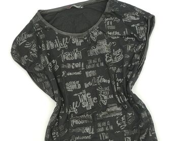 Casualowa tunika/bluzka idealna do jeansów i legginsów, wygodna dzięki mieszance bawełny z lycrą, z modnym typograficznym wzorem na całej powierzchni. Marka i skład potwierdzone metkami na zdjęciach.