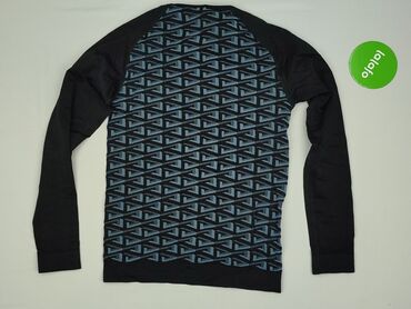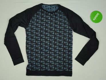 Bluzka damska z długim rękawem – rozmiar S - Fason: dopasowana, okrągły dekolt - Wzór: kolorowe, mandalowe/geometryczne motywy na czarnym tle, nadruk dookoła (przód i tył oraz rękawy) - Materiał: ...Stan: