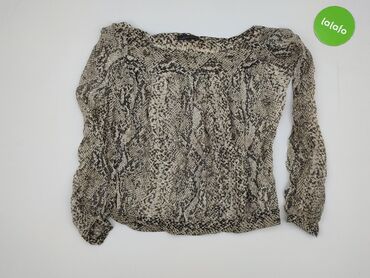 Bluzka damska ZARA BASIC - Wzór: zwierzęcy/pyton, w odcieniach bieli, beżu i brązu - Krój: kopertowy/przekładany z marszczeniami i falbaną przy dole - Rękaw: długi, mankiety zapinane na złote guzi...Stan: