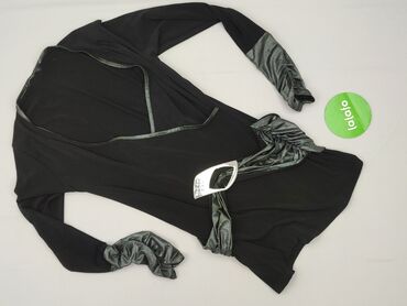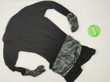 Na co dzieńElegancka bluzka/tunika damska z długim rękawem, czarna, z połyskującymi, srebrzystymi wstawkami.