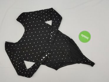 Body z długim rękawem – rozmiar XS - Krój: dopasowane body z wysokim, półgolfowym kołnierzem i długimi rękawami. - Zapięcie: zatrzaski w kroku. - Materiał: elastyczna, gładka dzianina o satynowym ...Czarne body w białe groszki – Reserved YFL, rozmiar XS.