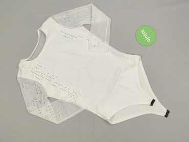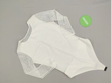 Białe body damskie Sinsay - Krój: klasyczne body z krótkim rękawem i okrągłym dekoltem - Zapięcie: napy w kroku (2 szt.) - Rozmiar z metki: M - Kolor: biały - Materiał: gładka, elastyczna dzianina...