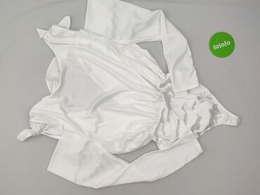 Białe body damskie z bufiastymi, półprzezroczystymi rękawami - Rozmiar: XS (z metki) - Krój: dopasowane body, okrągły dekolt - Rękawy: długie, lekkie i zwiewne, transparentne, o delikatnym bufiast...